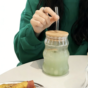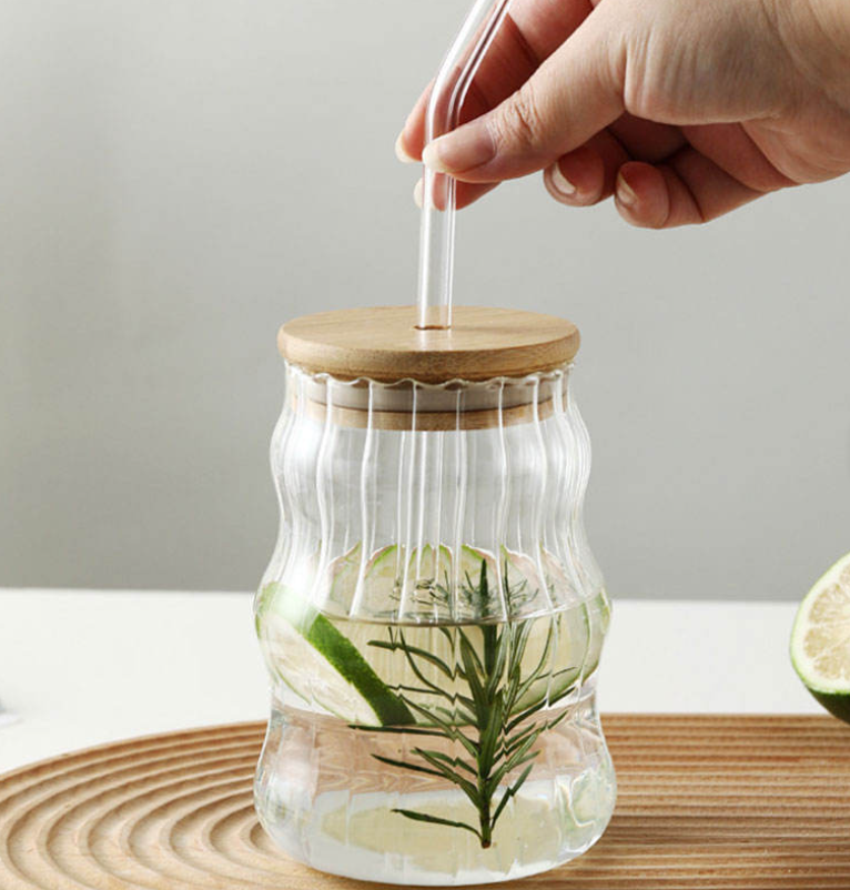 Heat-Resistant Striped Glass Tumbler for Home Use